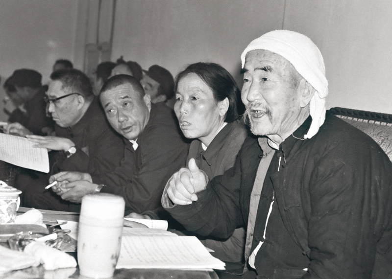1982年11月29日,出席五届全国人民代表大会第五次会议的山西省代表团分组审议宪法修改草案。图为全国劳动模范、植棉能手吴吉昌在发言。 新华社记者 王新庆/摄