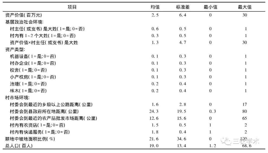 (三) 影响农村集体资产确权的相关因素的描述性统计