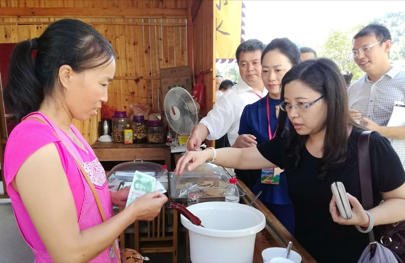 大陇镇下辖的8个村集体(7个行政村、1个居委会)聚集在一起,共同打造了一个“抱团式”的全域旅游新局面。在当地政府的引导下,村子里兴办了糍粑坊、豆腐坊、酿酒坊等传统美食作坊,售卖着当地特色小吃,酥脆的南瓜饼、滑嫩的豆腐、软糯的糍粑等,满是客家风味。红军井旁一家叫“一品香”的客家小吃店里,“凉水西施”王根梅每天都要卖上一大桶凉水,她告诉记者,以前她在外打工,一个月就赚一千多块,而且很辛苦。“现在开店,一个月收入有四五千元,而且在家门口。”。