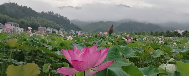 刚进村口,就看到百余亩连片的莲塘。此时正值莲蓬丰收季节,迎接游客的,首先是一捧新鲜翠绿的莲蓬。村内,整洁有序的民宅,统一都是“坡顶黛瓦、白墙红柱、吊楼翘角、墙裙花窗”的客家民居风格;农家小院统一用木栅栏围成,菜园鱼塘统一用竹篱笆围住,村内主道青石板铺路,房前屋后种植花木,村里一片生机盎然,尽显乡土气息。