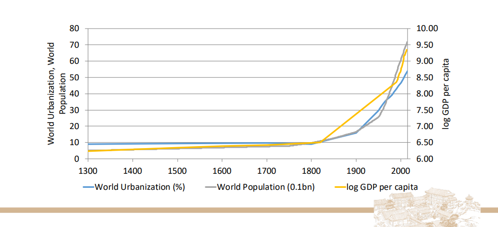 图2 经济增长、人口增加、城市化的历史变化趋势