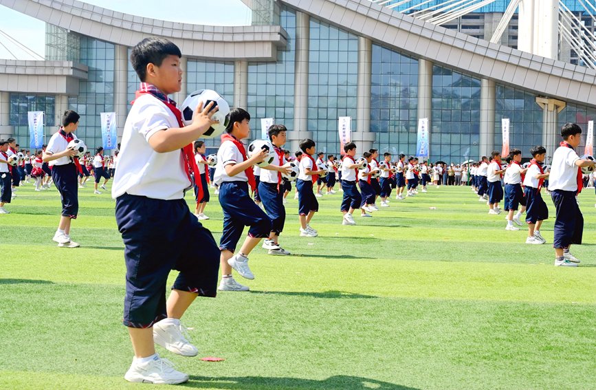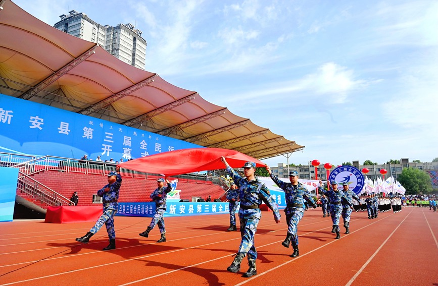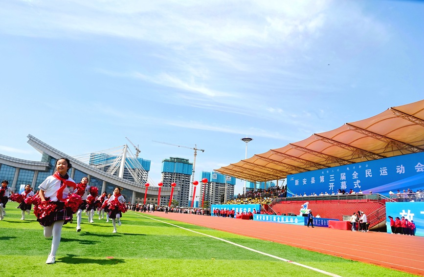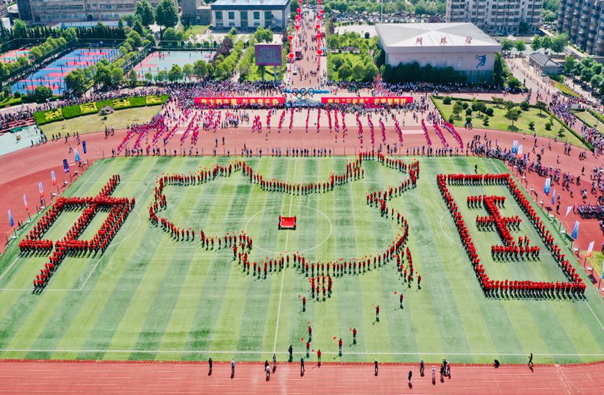在大型文体表演中,该县学林小学的孩子们伴随着动感的音乐跳起足球操《花儿与少年》,新城实验学校640名少先队员带来大型团体操《筑梦未来》,展现出新时代少年自信阳光的风貌。在团体操《少年强则国强》表演中,该县职教中心学生们变换队形,在场地两侧摆出“中国”两个大字造型,在场地中间组成了宏伟的中国地图样式,用自己的方式表达对祖国的深情祝福。在铿锵的旋律声中,该县800余名健身爱好者,展示了太极功夫扇《扇舞苍穹竞风流》,展现出新安健身爱好者意气风发、追求卓越的别样风采,赢得全场热烈掌声。