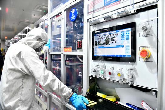 6月6日,在山东吉利欣旺达动力电池有限公司,工作人员在锂电池生产线值守。 新华社记者 郭绪雷 摄