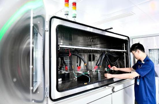 6月6日,在枣庄市国家锂电池产品质量检验检测中心,工作人员对锂电池进行检验。 新华社记者 郭绪雷 摄