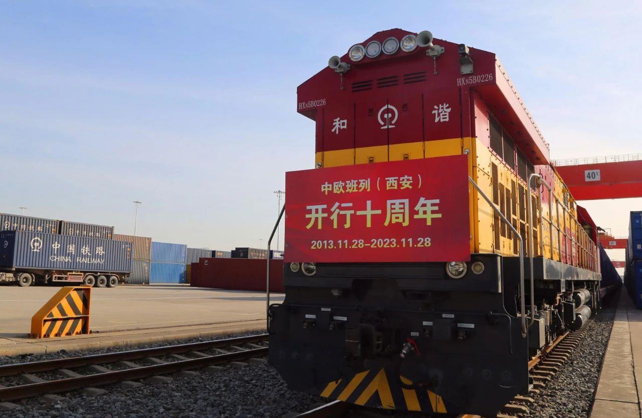 △2023年11月28日,X8155次中欧班列从西安国际港站缓缓驶出,开往德国汉堡。